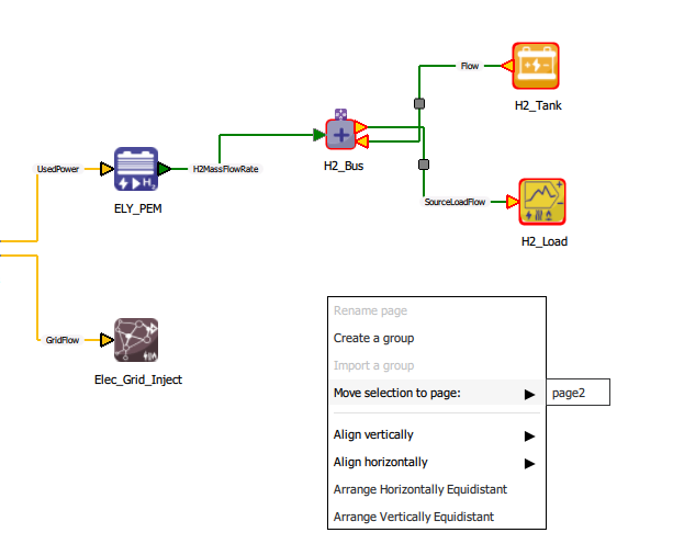 Using the context menu: select the components to be moved, right-click on an empty space, choose “Move selection to page”, and then select the target page.